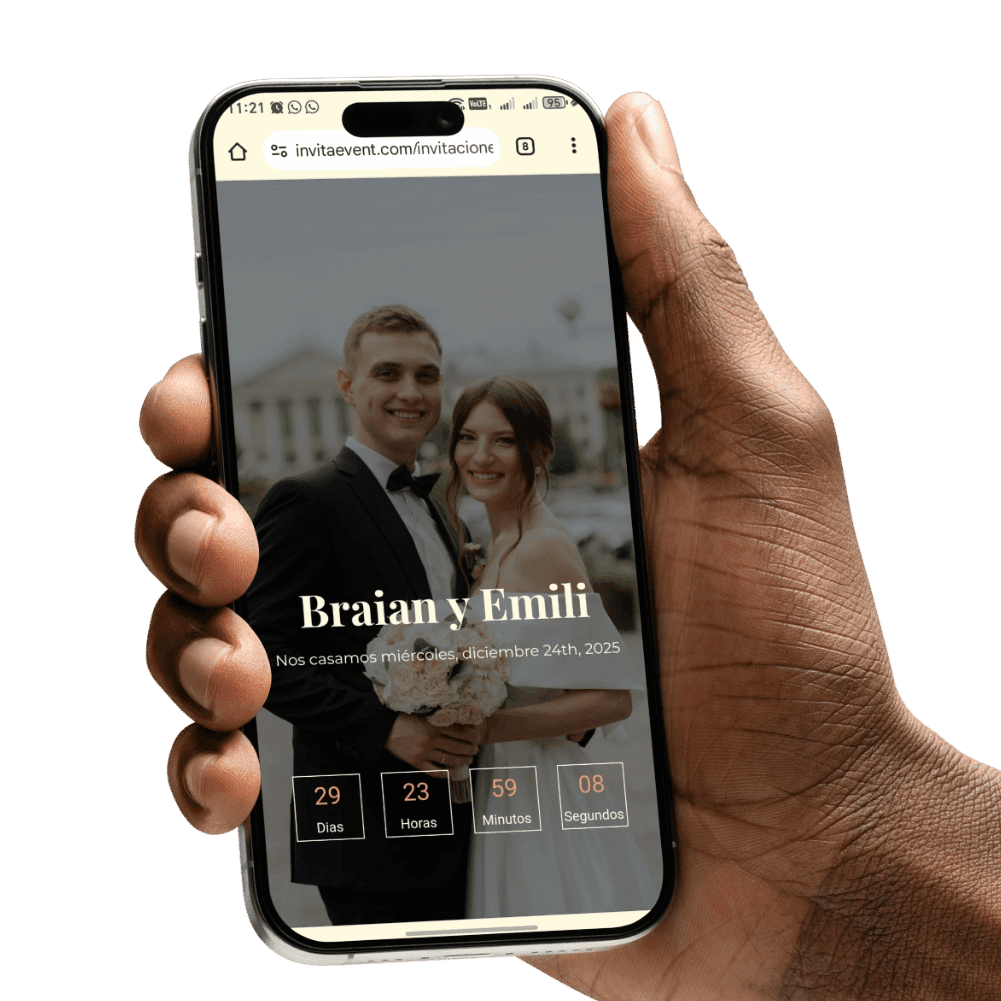 Recibe tu enlace único (invitaevent.com/tu-boda) y envíalo ilimitadamente por WhatsApp